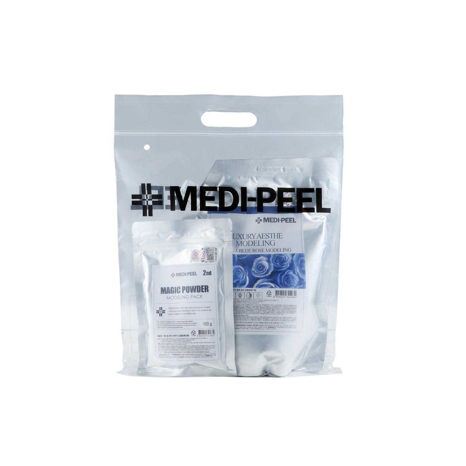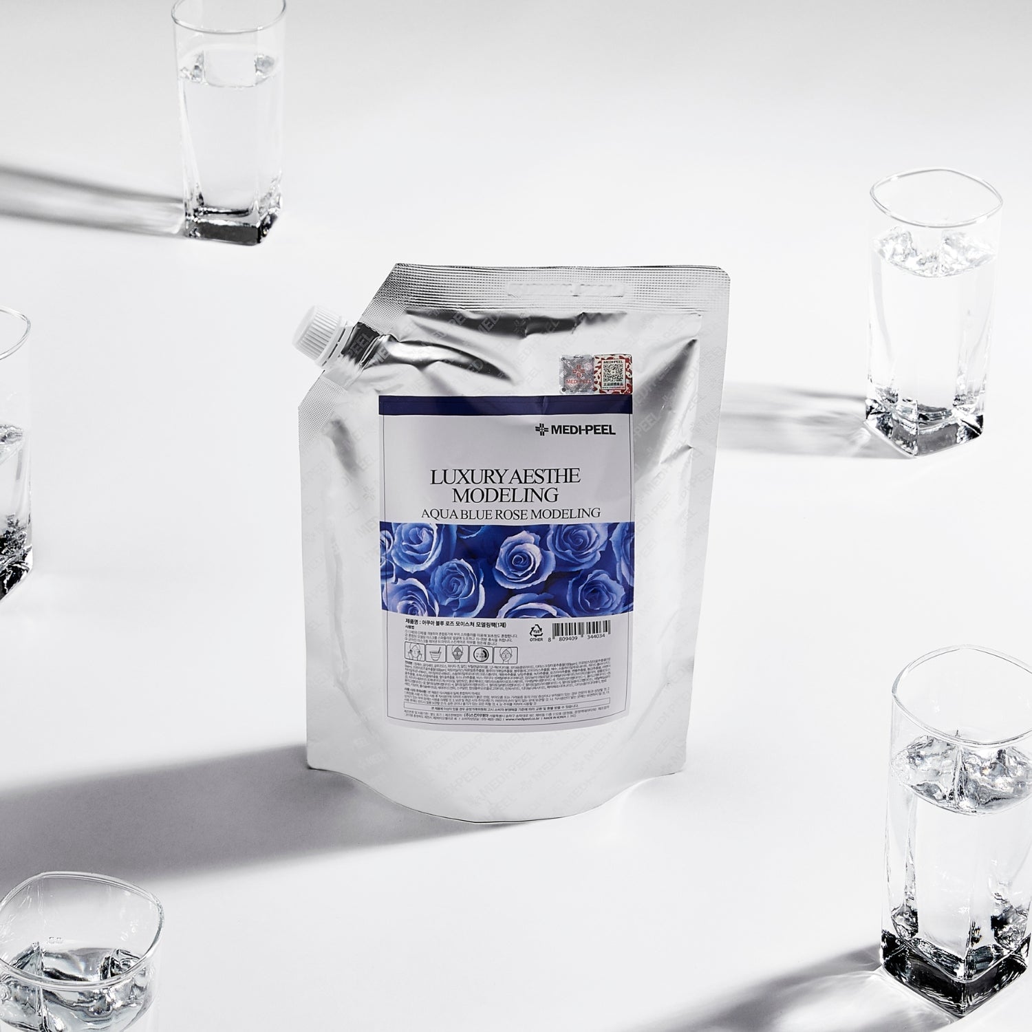 MEDI-PEEL Aqua Blue Rose Modeling Pack is a professional essence modeling mask enriched with three types of rose extracts and six types of hyaluronic acid to deeply hydrate, soothe, and refresh sensitive skin.