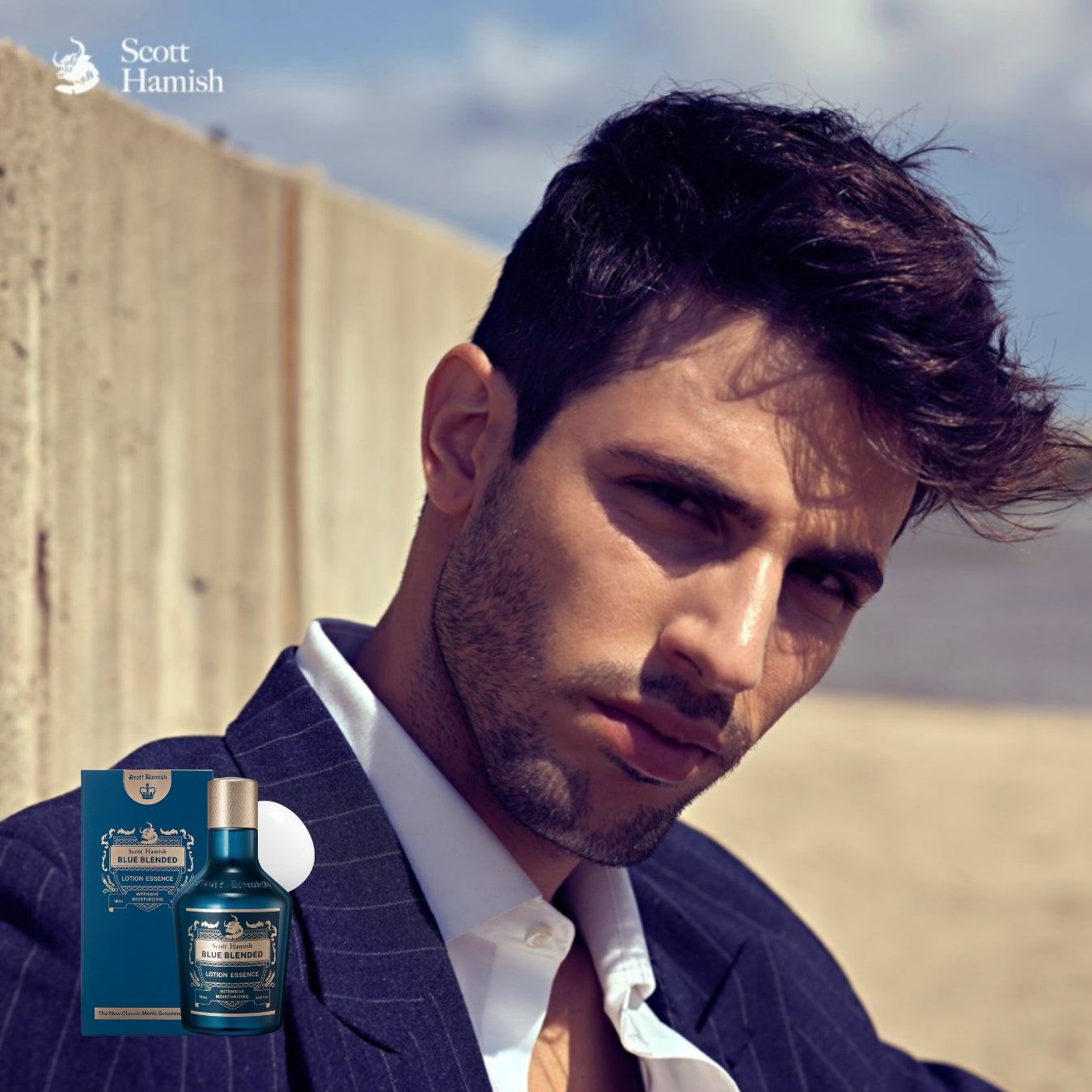 Scott Hamish Blue Blended Lotion Essence is infused with the Scottish Blended Complex and enriched with plant extracts to revitalise men's skin, improving elasticity and vitality. Inspired by the heritage of Scottish whiskey. this all-in-one essence combines lotion and aftershave care with Centella Asiatica and milk thistle extract in a single, nourishing formula.
