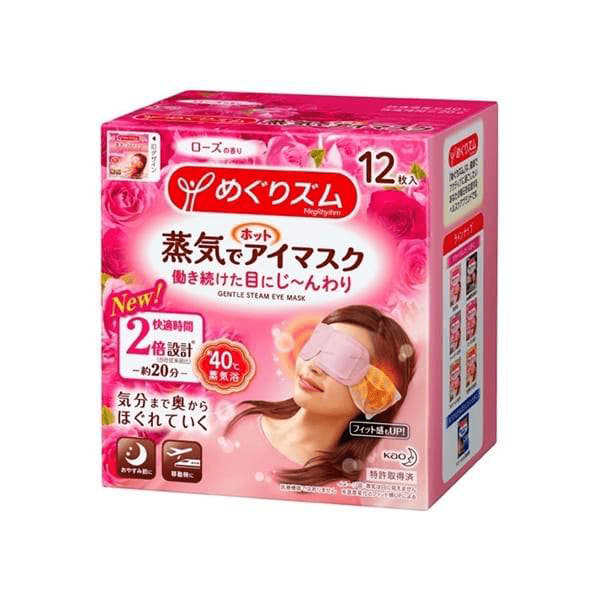 KAO MegRhythm Steam Eye Mask (Rose) is a “steam bath for the eyes” that helps with deep release of tension and soothes the mind.