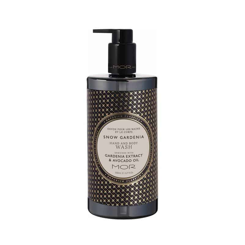 MOR Emporium Classics Snow Gardenia Hand & Body Wash is a refreshing wash with aloe vera and vitamin E to soothe and hydrate, while gardenia florida extract and avocado oil refresh and gently fragrance the skin.